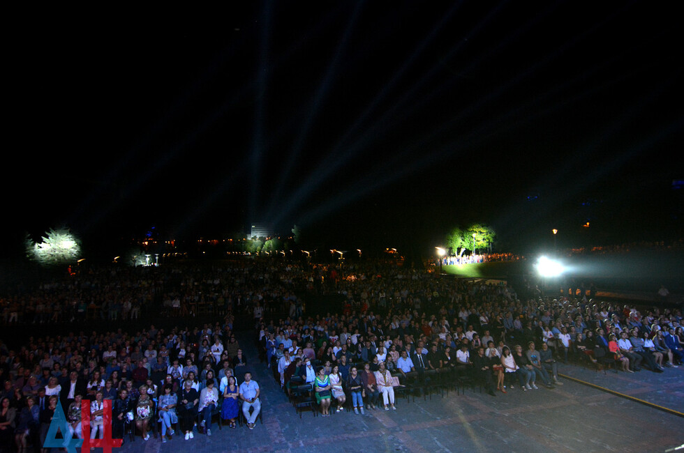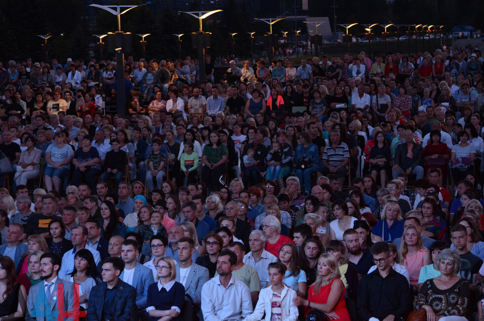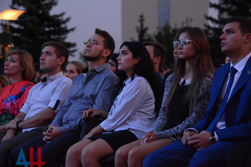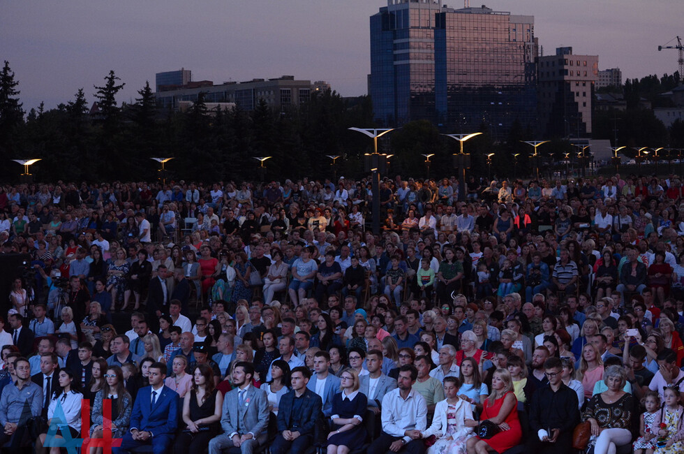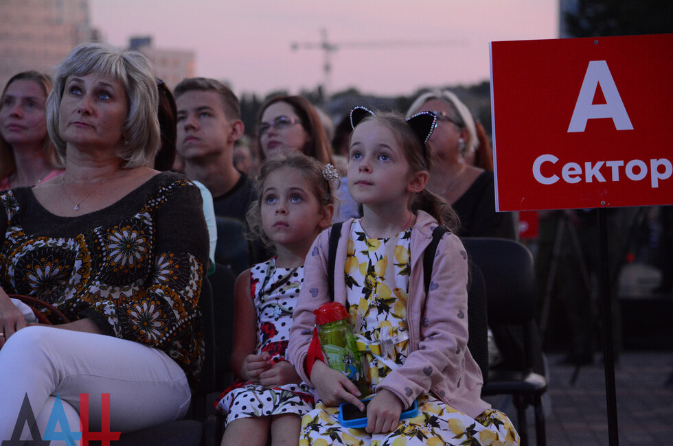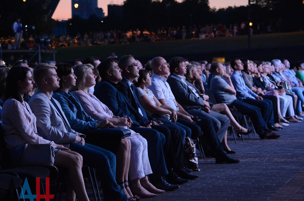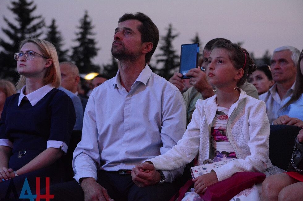 Для проведения концерта у подножия мемориала была оборудована сцена с двумя экранами. На мероприятие пришли тысячи человек, в их числе Глава ДНР Денис Пушилин.
