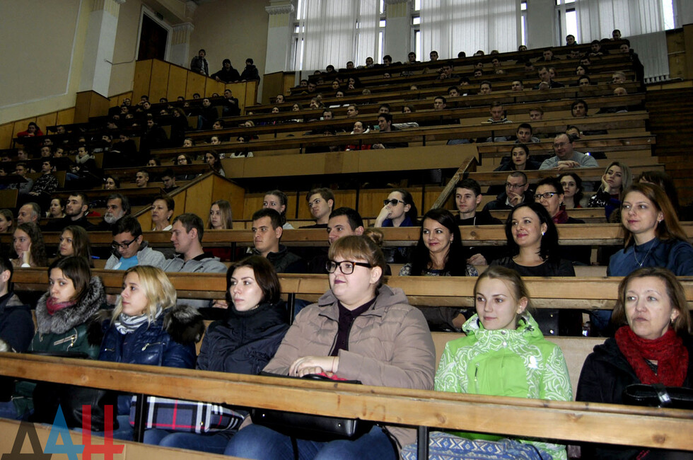 На лекции присутствовали первый заместитель министра образования и науки ДНР Михаил Кушаков и ректор ДонНТУ Константин Маренич.