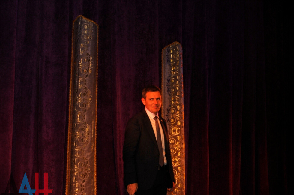 Перед официальным открытием артисты организовали для зрителей красочное шоу на площадке у здания театра. С пришедшими на праздник взрослыми и детьми танцевали, пели, водили хороводы куклы-великаны, скоморохи и ходулисты. С приветственным словом перед собравшимися выступил и.о. министра культуры ДНР Михаил Желтяков.